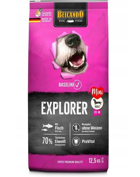Doprajte svojmu psovi jedinečnú každodennú stravu vďaka BELCANDO Baseline Explorer! Tento špeciálne vyvinutý prípravok je určený pre dospelých psov malých a stredných plemien. Vyrába sa v renomovanej nemeckej továrni, zaručuje najvyššiu kvalitu surovín a spĺňa najvyššie nutričné štandardy. Čo odlišuje BELCANDO Baseline Explorer od iných krmív? V prvom rade výnimočná chuť a výborná stráviteľnosť. Vášmu maznáčikovi bude nielen chutiť, ale dodá aj potrebné živiny. Mäsové zložky pochádzajú výhradne zo zvierat určených na ľudskú spotrebu, čo zaisťuje najvyššiu kvalitu bielkovín. Výrobok bol starostlivo testovaný a vychádza z dlhoročných skúseností v oblasti výživy zvierat. Neobsahuje sójový proteín, umelé farbivá, zvýrazňovače chuti ani konzervačné látky. Vďaka tomu je nielen chutná, ale aj zdravá voľba pre vášho maznáčika.