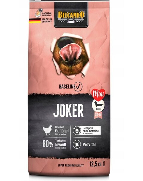 BELCANDO Baseline Joker je odpoveďou na potreby psa! Toto jedinečné krmivo bolo vytvorené pre dospelých psov malých a stredných plemien a poskytuje im výživné a chutné krmivo. Receptúra bez obilnín zaručuje zdravú a stráviteľnú stravu, bez potenciálnych alergénov.