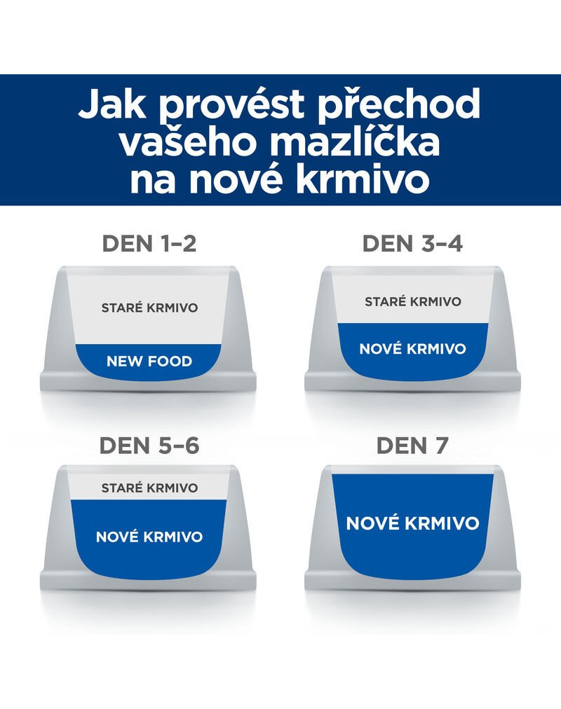 - Doporučené krmení pouze suchým a mořským krmivem Prescription Diet.