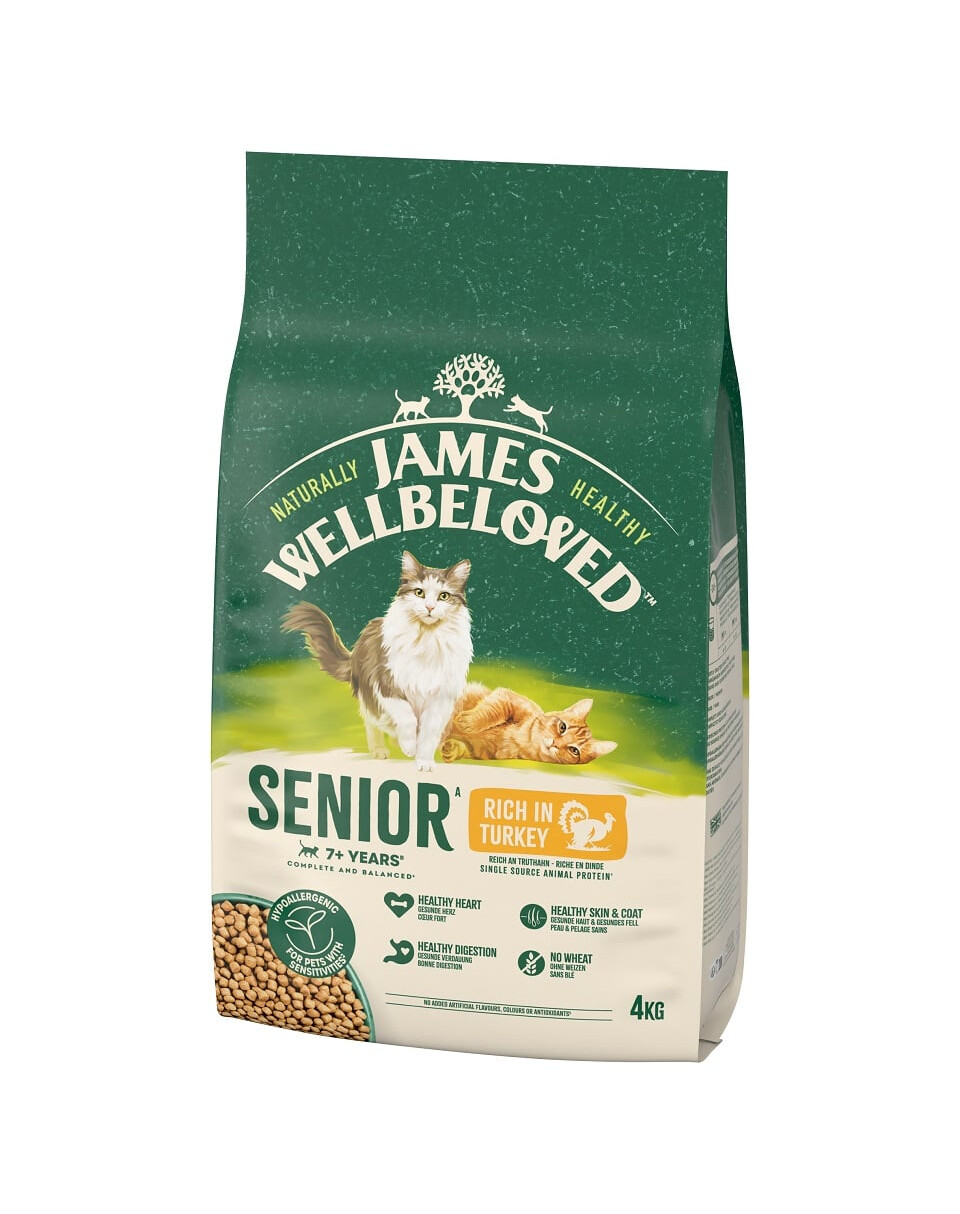 JAMES WELLBELOVED Senior 4 kg sucha karma pełnoporcjowa dla starszych kotów >7 lat bogata w indyka