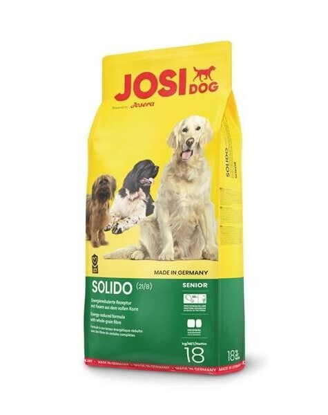 JosiDog Solido je lehké a vyvážené krmivo vytvořené pro dospělé psy se sníženou fyzickou aktivitou nebo pro starší psy a psy se sklonem k nadváze.