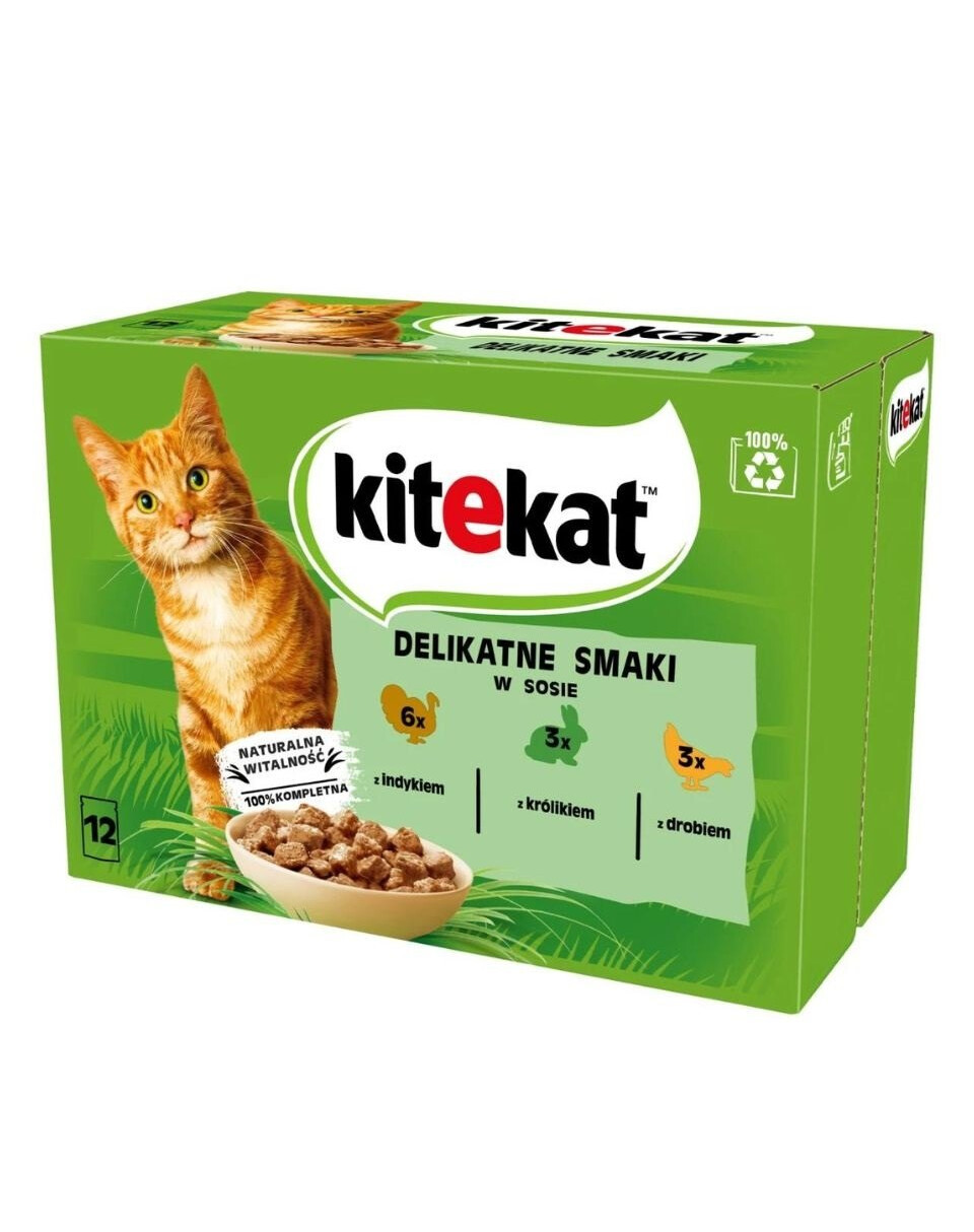 KITEKAT Delikatne Smaki w sosie 12x85g mokra karma dla kotów z indykiem, z królikiem, z drobiem