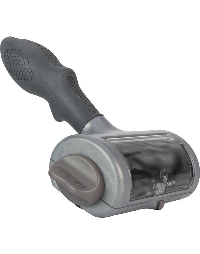 FURminator® Roller s nádobkou na čistenie chlpov. Nástroj určený na čistenie chlpov z čalúnených povrchov doma aj v aute. Bez použitia pásky alebo lepiacich rolí. Zariadenie má nádobu na zhromažďovanie nazbieraných chlpov. Otáčaním gombíka vyčistite valec. Používajte ich tak často, ako je potrebné.