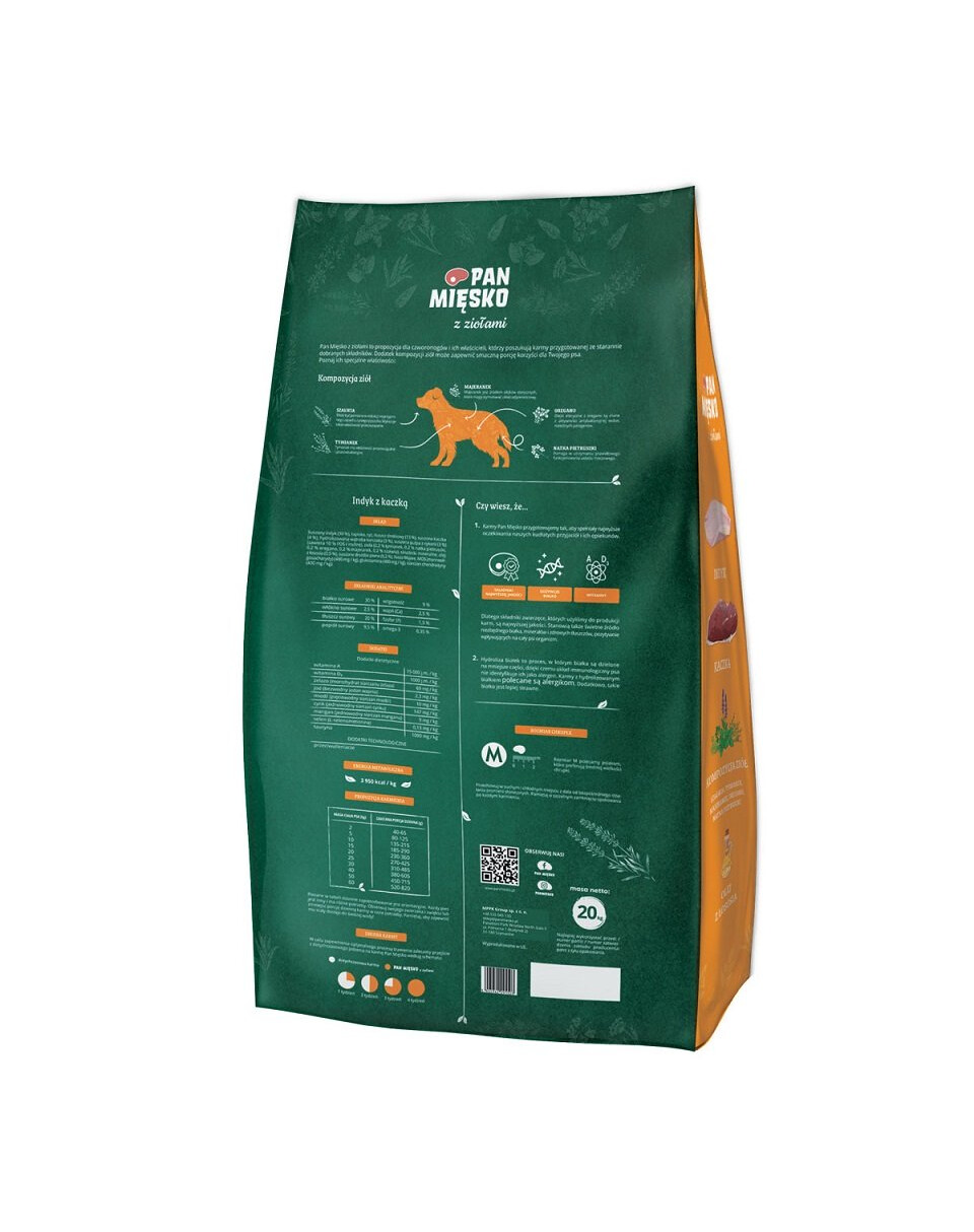 PAN MIĘSKO z ziołami Indyk z kaczką M 20 kg dla ras średnich