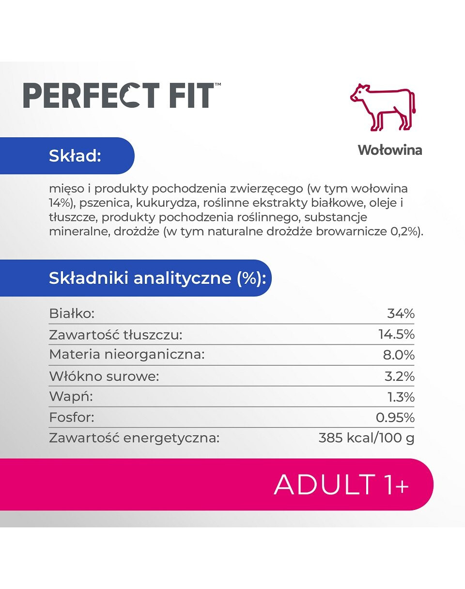 PERFECT FIT Adult 1+ Bogata w wołowinę 7 kg sucha karma pełnoporcjowa dla dorosłych kotów