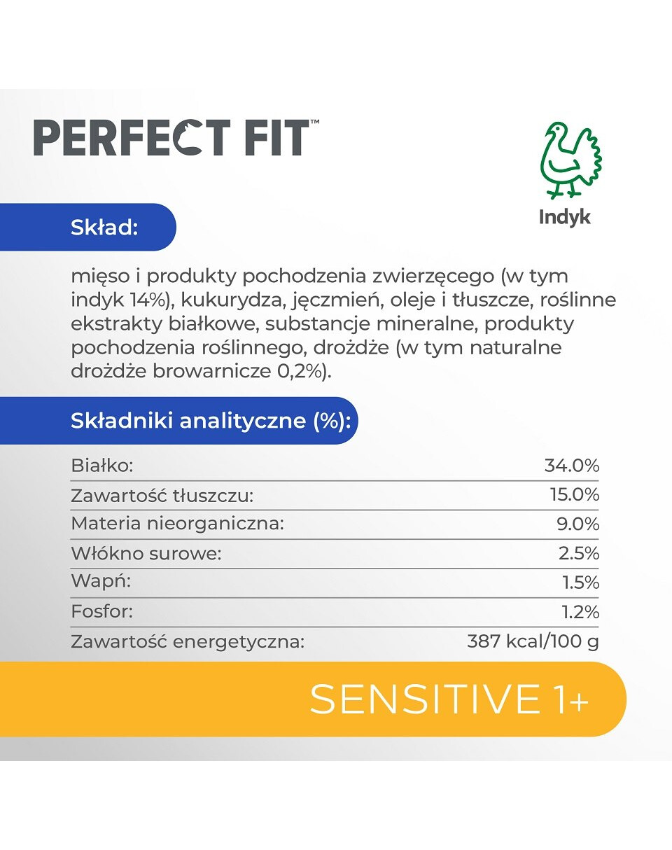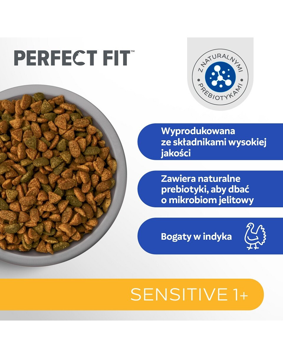PERFECT FIT Sensitive 1+ Bogata w indyka 7 kg sucha karma pełnoporcjowa dla dorosłych wrażliwych kotów