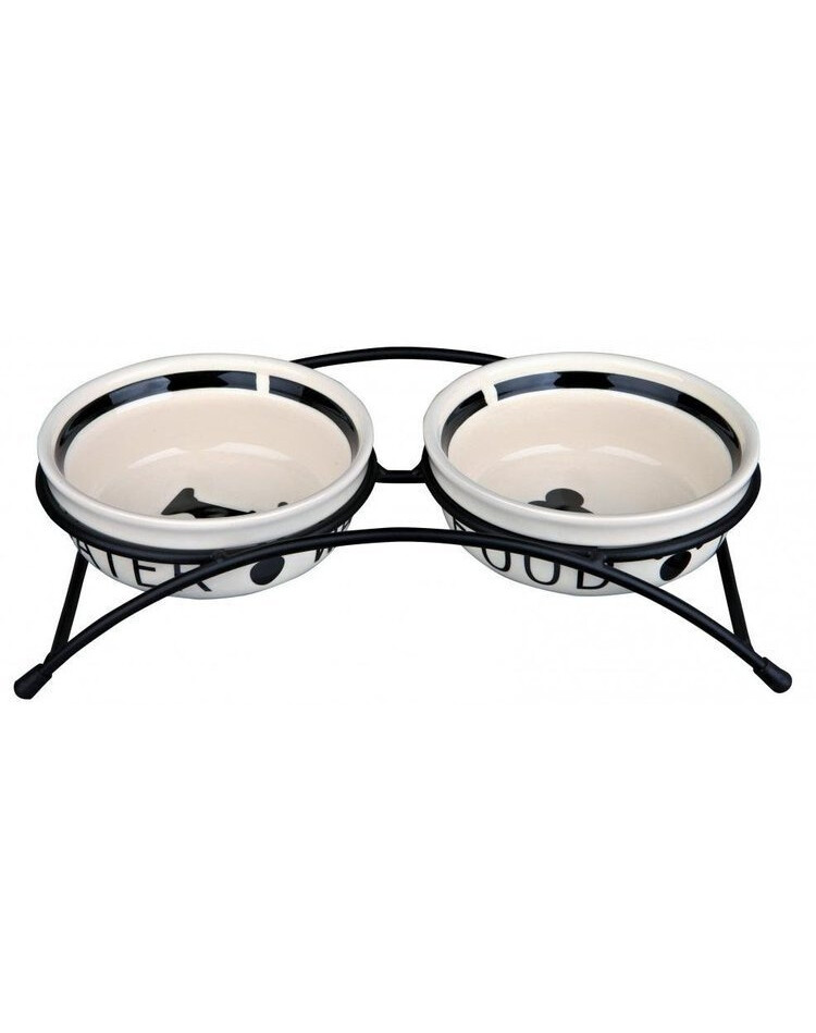 Materiál: Keramika (misky), práškovo lakovaný kov (stojan)