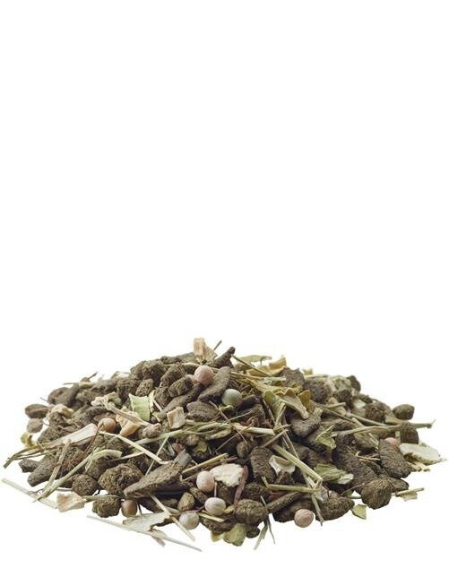 Jídlo se skládá z travin, bylin a zeleniny, takže je pestré a obsahuje hodně vlákniny. Kromě toho neobsahuje obiloviny, které by mohly bránit trávení.Žádný přidaný cukr