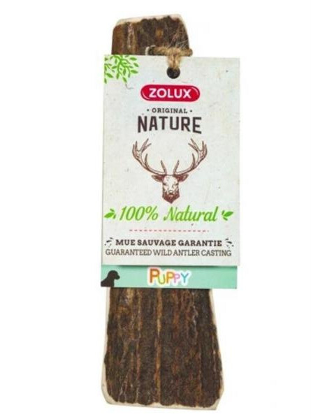 ZOLUX PUPPY jelenie parohy s brúseným okrajom sú prirodzeným žuvacím prostriedkom pre psov. Parožie sa získava prirodzeným procesom zhadzovania paroží divokých jeleňov v Európe. Výrobok neobsahuje žiadne prísady, farbivá ani konzervačné látky, čo zaručuje vysokú kvalitu, ktorú ocení každý pes. Brúsené hrany paroží zaisťujú bezpečnosť pri žuvaní bez toho, aby poranili ňufák psa. Vďaka suchej kostnej dreni je žuvanie veľmi chutné, čo vášho psa prinúti tráviť čas a uspokojiť jeho prirodzenú potrebu žuť. Maškrta je vhodná pre psy a šteňatá od 3 mesiacov veku.Rozmery